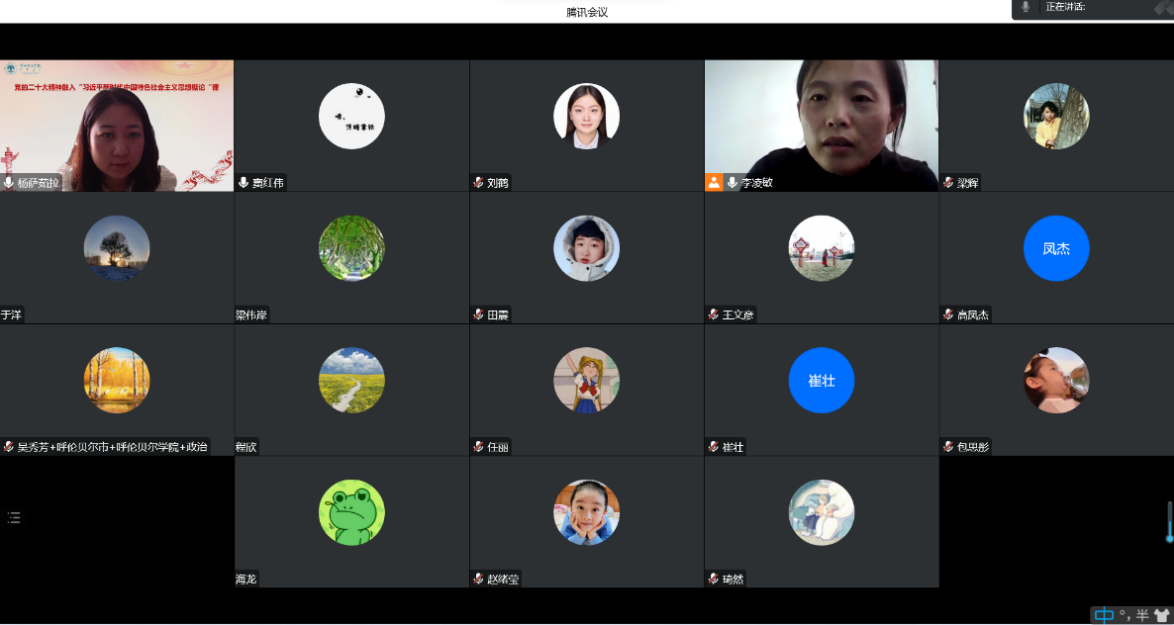 11月7日下午,习近平新时代中国特色社会主义思想概论教研室召开党的二十大精神融入“习近平新时代中国特色社会主义思想概论”集体备课会,教研室主任李凌敏从教学指导思想、教学原则要求、教学目标、教学重点内容等方面对二十大精神如何融入该课进行安排。与会教师进行研讨发言,认为要明确教学任务和方向,要坚持读原著、学原文,创新教学方法,采用案例式教学、实践教学等方法将二十大报告的理论成果、党章修正案成果以及习近平总书记重要讲话精神融入到课程教学中。同时,与会教师以教育部统一课件为依据,探讨了将党的二十大报告内容融入具体教学的案例,为接下来将党的二十大精神融入该课程提供教学借鉴。