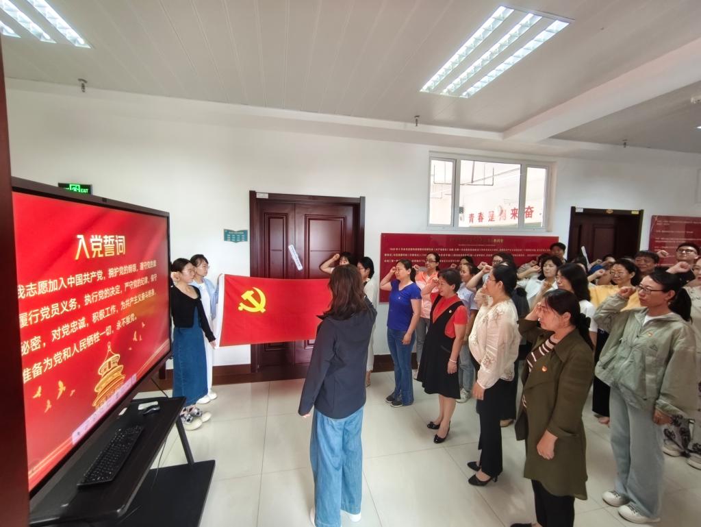 活动伊始,在党支部副书记杨萨茹拉的领誓下,全体党员面向党旗庄严宣誓。铿锵有力的誓言响彻会场,彰显出共产党人的坚定信念与使命担当。活动第二项,刘宏强、乌日汗、窦红伟三位党员结合自身成长经历和岗位实践,讲述了对党的忠诚信仰、对教育事业的无限热爱以及对服务人民群众的强烈责任感,展现了新时代教育工作者服务人民、传承红色基因的崇高情怀。