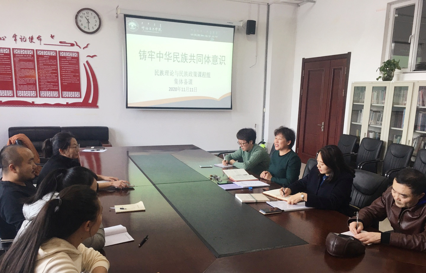 为推动中华民族共同体教育进课堂,引领各族学子深刻认识并领会中华民族共同体的形成和发展,不断铸牢中华民族共同体意识,2020年11月11日下午,304永利集团民族理论与民族政策课程组在崇文楼B123组织召开了以“铸牢中华民族共同意识”为主题集体备课会。会议由刘凤琴书记主持,李俏副经理及“民族理论与民族政策”课程组全体教师参加。