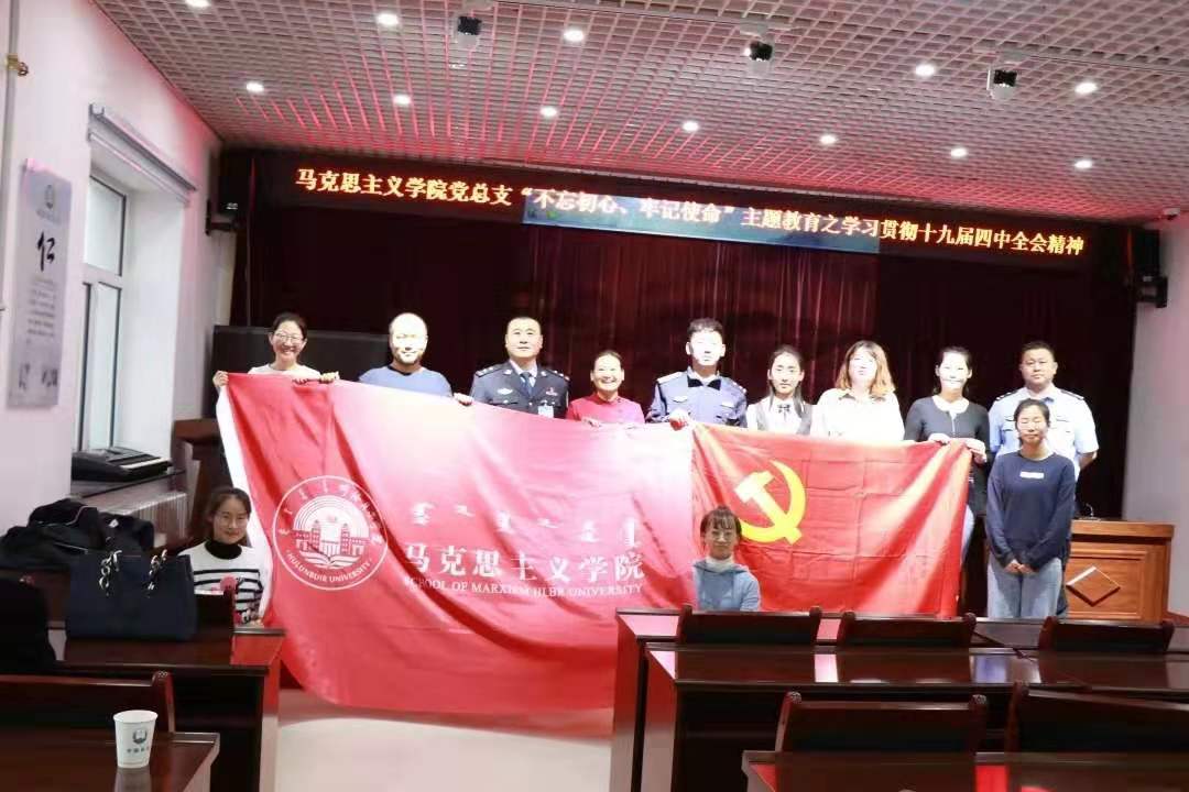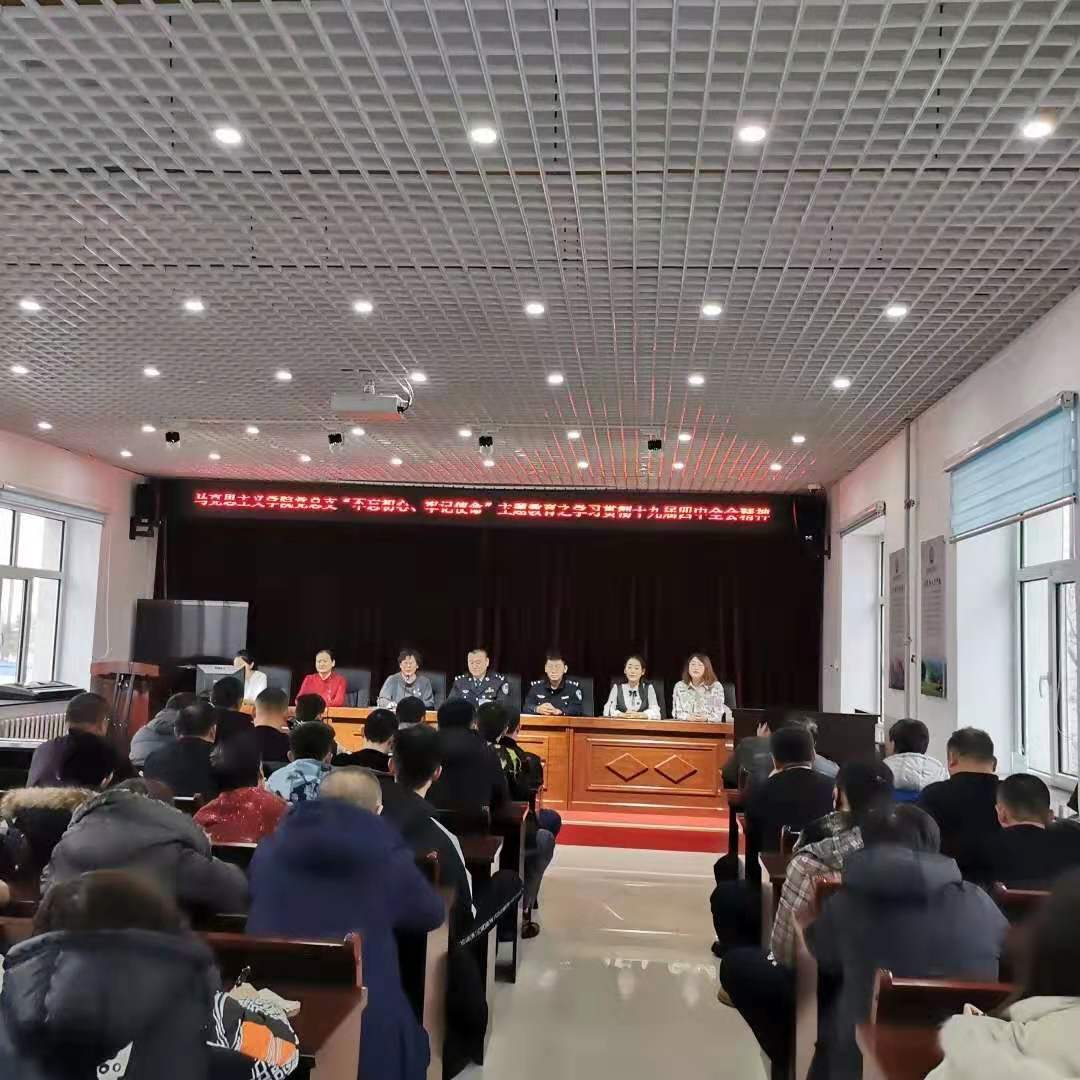 2019年11月22日下午,304永利集团党总支书记刘凤琴、副书记刘琳、教师李琳颖、张舒、吴娇、李昱以及优秀员工代表赴鄂温克自治旗巴彦托海司法所进行“学习贯彻十九届四中全会精神”理论宣讲。司法所组织辖区保释人员、矫正人员等40余人以及司法所全体工作人员参加宣讲活动。主讲教师李琳颖。