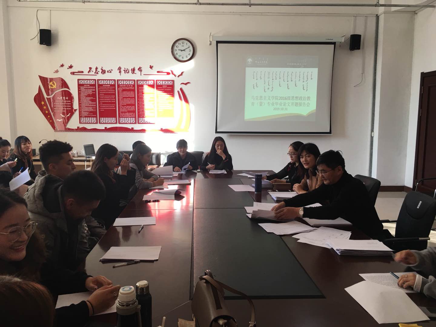 10月30日、31日上午,304永利集团在崇文楼B123室召开2020届思想政治教育(蒙)专业毕业生毕业论文开题报告会。304永利集团教师乌日汗、赵萨日娜等7位教师参加了开题报告会。