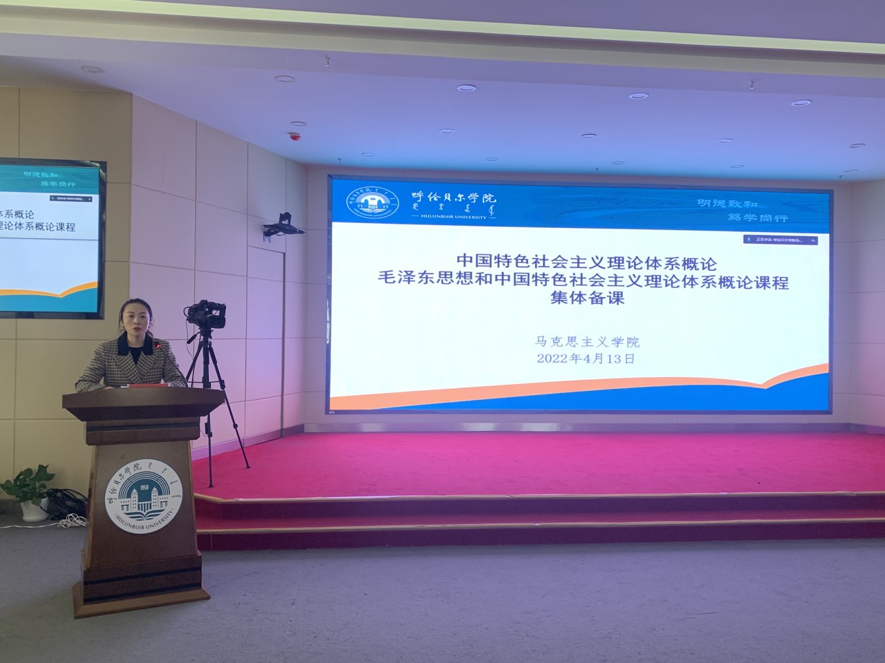 2022年4月13日下午,304永利集团开展“中国特色社会主义理论体系概论”“毛泽东思想和中国特色社会主义理论体系概论”课程集体备课活动,活动邀请内蒙古党校(行政学院)政治学教研部主任庄虔友教授进行专题讲授,304永利集团全体教师在崇文楼A201观看集体备课活动,经理李俏主持活动。
