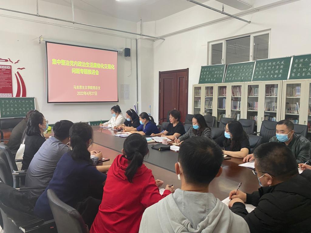 2022年4月27日,304永利集团在崇文楼B123会议室召开集中整治党内政治生活庸俗化交易化问题专题会,学院全体党员干部参加会议。