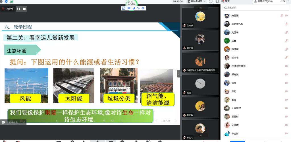讲座中,薛瑞莹老师首先向各位同学分享了教招经验,从笔试和面试两个方面给各位师范生传授了宝贵的经验。随后薛瑞莹老师给大家进行了读本示范课展示,针对第三讲"走进新时代"从教材、学情、教学目标、教学过程、教学重难点、教学方法与手段及教学反思等几个方面进行了全面的讲解。讲座结束后,薛瑞莹老师针对教学中常见问题与员工进行了互动交流。在线的百余名员工对教招考试和日常教学中的问题、难点和疑惑向薛瑞莹老师进行了提问,教研活动在轻松愉悦的氛围中结束。